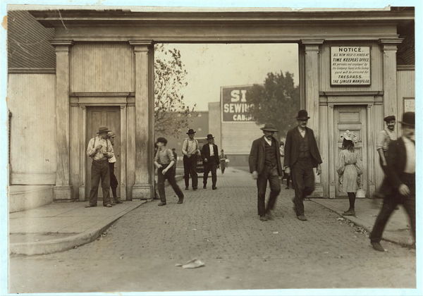 Noon hour, Singer Mfg Co., Boys work there: girls carry lunch.  Location: South Bend, Indiana.