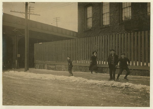John Doyle (smallest boy in street), apparently 12 or 13 years old. Small and Wizened. Been sweeping for a short time in Wamsutta Mill in #3 spinning room. Lives at 3 Mt. Pleasant St. Location: New Bedford, Massachusetts.