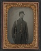 Unidentified private in Confederate uniform and Georgia frame buckle with bayoneted musket
