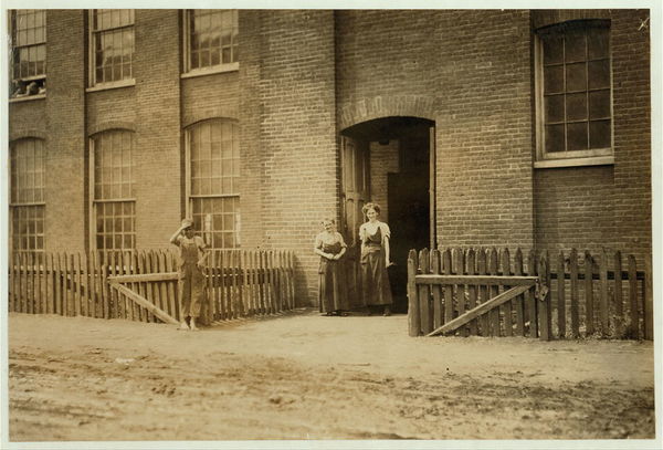 Young worker leaving mill of Sagamore Manufacturing Company, Fall River, Mass., August 26, 1911. Noon. Richard K. Conant, Witness. Location: Fall River, Massachusetts.