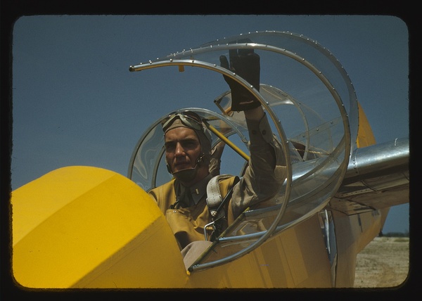 Marine lieutenant, glider pilot in training, ready for take-off, at Page Field, Parris Island, S.C.