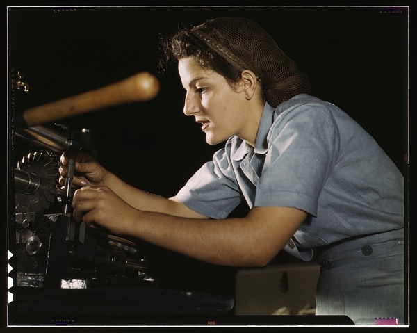 Mary Louise Stepan, 21, used to be a waitress. She has a brother in the air corps. She is working on transport parts in the hand mill, Consolidated Aircraft Corp., Fort Worth, Texas