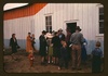 Group of homesteaders in front of the bean house which was used for exhibit hall at the Pie Town, New Mexico Fair