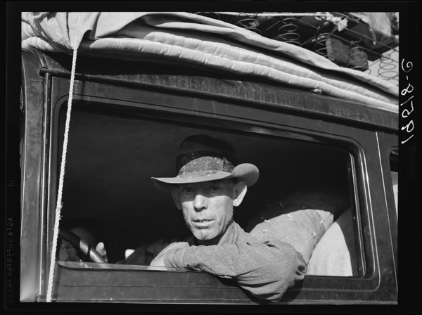 Merced (vicinity), California. Migratory cotton picker on highway near Merced, California. He and his family from Independence, Kansas, have been looking for work chopping cotton