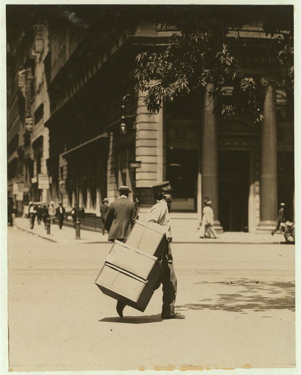 Group of Messengers, lower Broadway. Location: New York, New York (State)