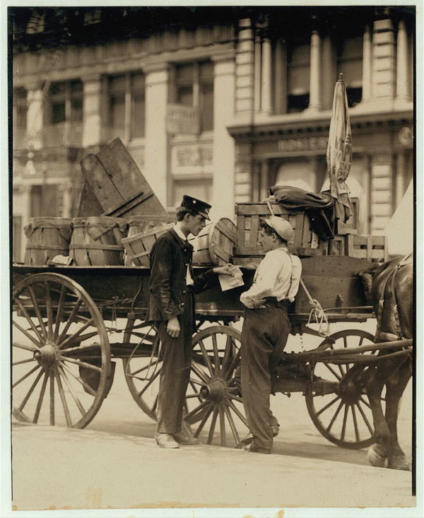 Messenger boys on a hurry (?) call. Union Square, N.Y. Location: New York, New York (State)