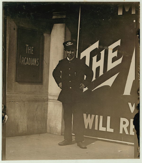 Large A.D.T. Boy, Park Row, N.Y. Location: New York, New York (State)