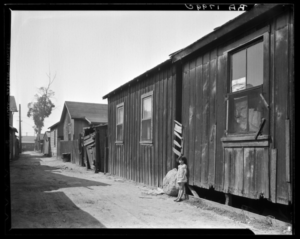 Mexican quarter of Los Angeles. One quarter mile from City Hall. Area has been condemned and will be torn down shortly to make space for the new Union Railroad station. Average rent is eight dollars