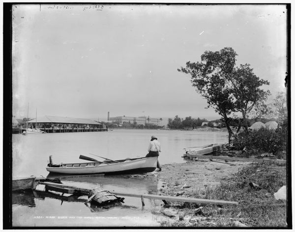 Miami River and the Hotel Royal Palm, Miami, Fla.