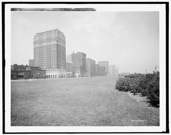Michigan Avenue and Grant Park, north from Blackstone Hotel, Chicago, Ill.