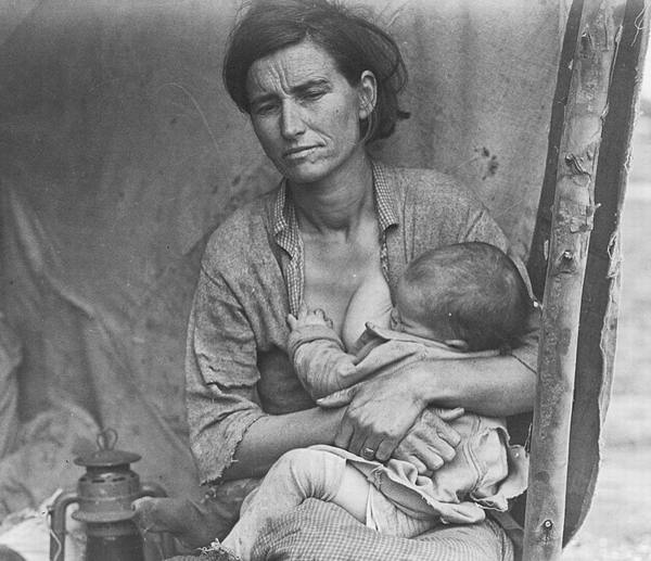 Migrant agricultural worker's family. Seven hungry children. Mother aged thirty-two. Father is native Californian. Nipomo, California