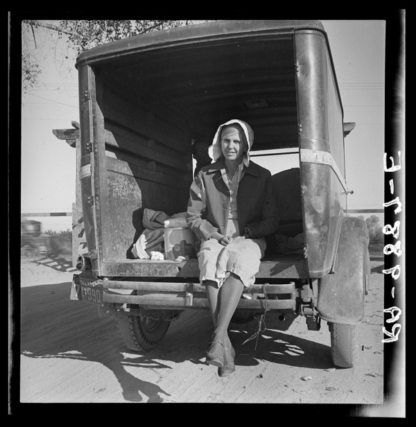 Migrant cotton picker on way to field. Kern migrant camp, California