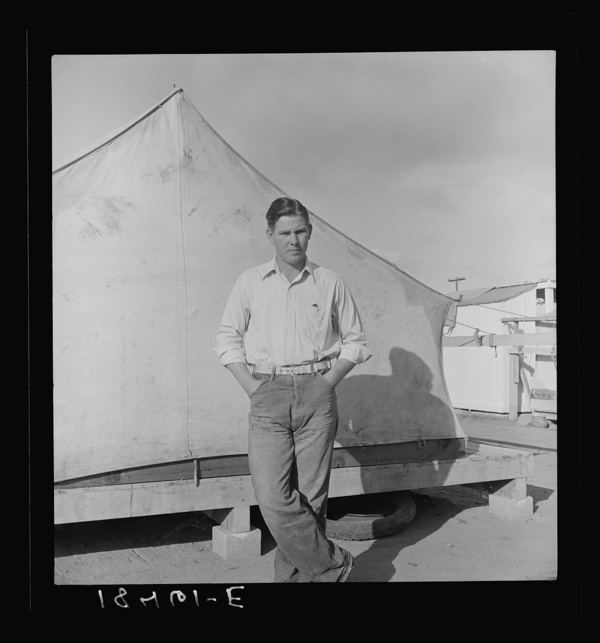 Migrant cotton picker's child who lives in a tent in the government camp instead of along the highway or in a ditch bank. Shafter Camp for migrants, California