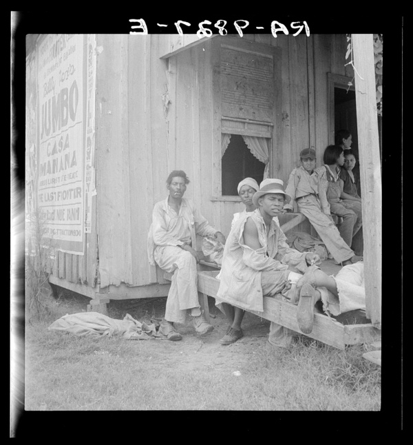 Migrant cotton pickers at lunchtime. Near Radstown, Texas