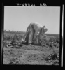 Migrant potato pickers pitching their tent. Often they are without water and sanitary conditions. Near Shafter, California