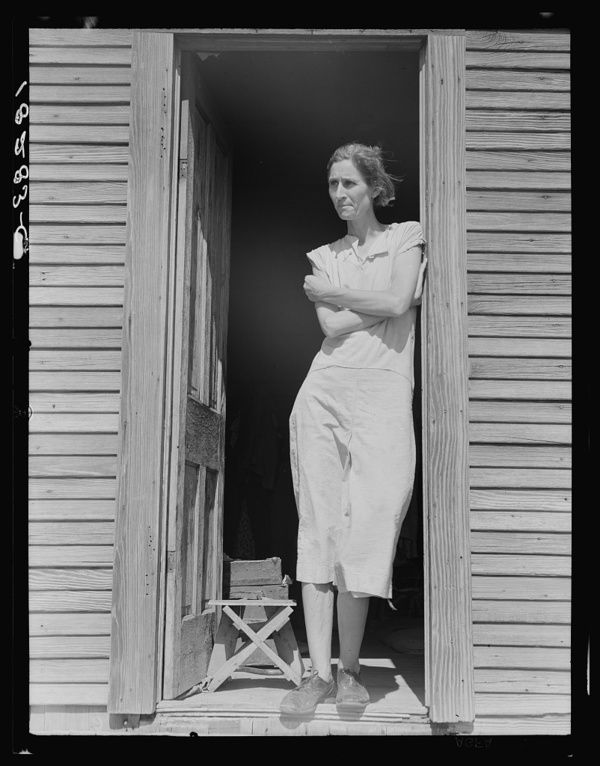Migratory laborer's wife with three children (not in photo). Near Childress, Texas
