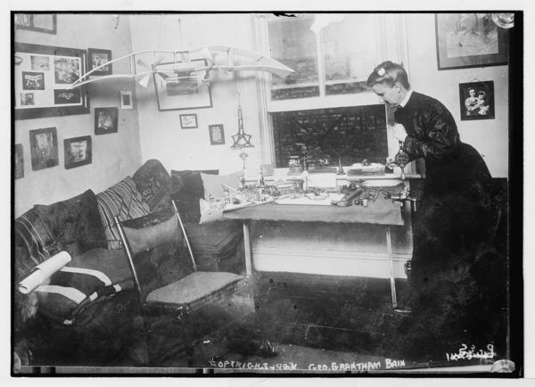 Miss E. H. Dodd in room various aeronautical displays