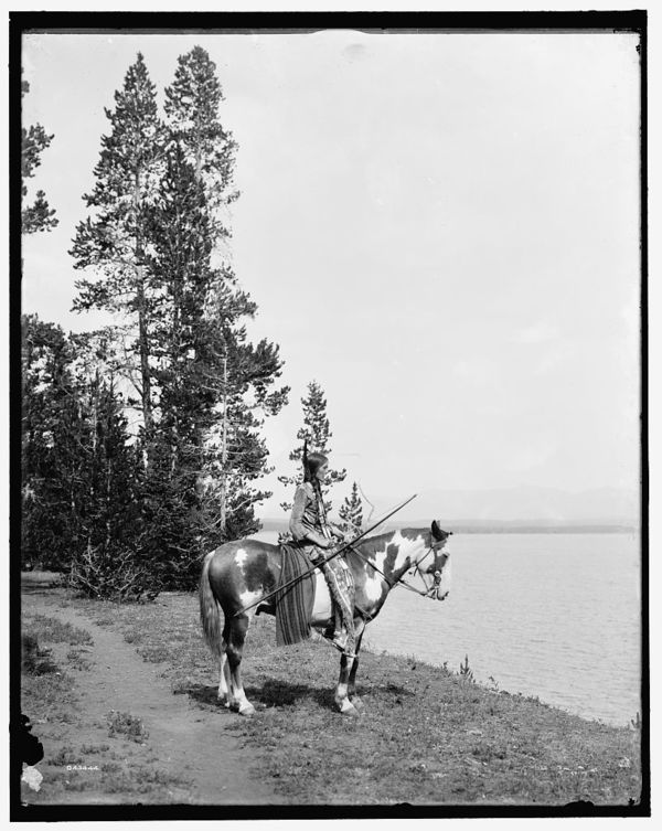 Miss Waters on pinto pony (feather standing up)
