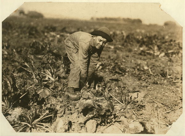 Nine-year old Pauline Reiber topping beets, a dangerous and hard job for such a child. Location: Sterling vicinity, Colorado