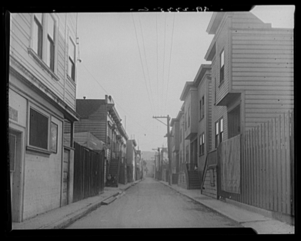 Lilac Street, Mission District. Rent fifteen dollars a month for three rooms. San Francisco, California