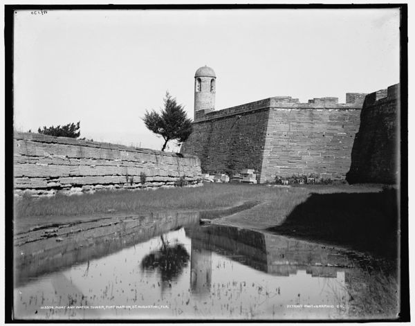 Moat and watch tower, Fort Marion, St. Augustine, Fla.