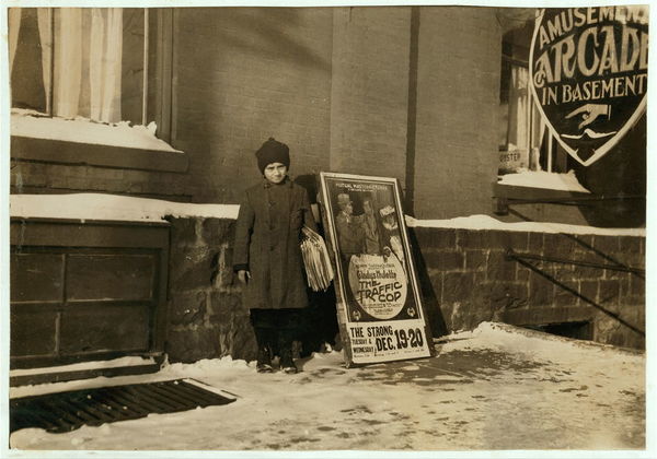 Alfred Hicks, a 10-year-old newsie, selling Boston papers at noon. Location: Barre, Vermont