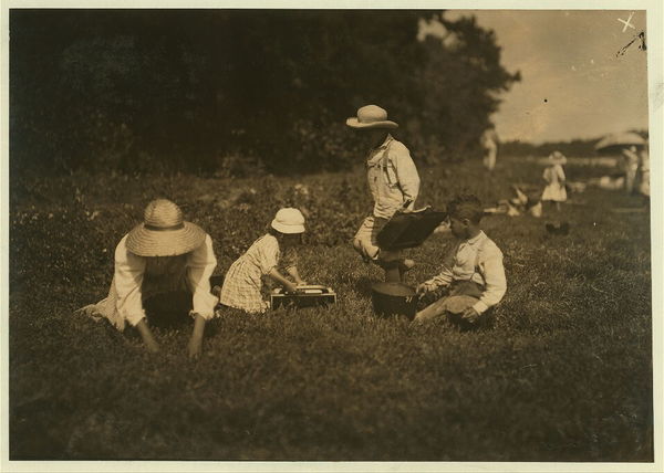 Mother and three children - Roderez family, E. Falmouth, Mass. James - 8 years; Manuel 5; Marion, the baby, 4. They pick 28 measures a day. Mother says, "We can't pick fast cause the baby is too fussy." Location: Falmouth - Baker Bog, Massachusetts.