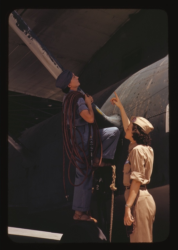 Working on a plane at the Naval Air Base, Corpus Christi, Texas
