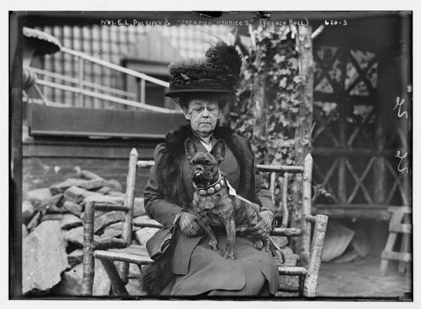 Mrs. E.L. Pulsifer seated with her French Bulldog, "Champion Maurice II"
