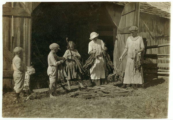Mrs. J.L. Hazel and children stripping tobacco. A very interesting and poorly educated family. See special card and Kentucky report. Location: Bowling Green vicinity, Kentucky. / Lewis W. Hine