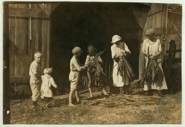 Mrs. J.L. Hazel and children stripping tobacco. A very interesting and poorly educated family. See special card and Kentucky report. Location: Bowling Green vicinity, Kentucky / Lewis W. Hine