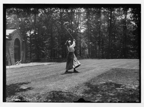 Mrs. L.W.Callan, playing golf, Essex Country Club golf tournament