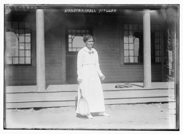 At tennis tournament, Morristown - Misses Hamilton, Crag, Stephens, Hamilton, Gertrude Della Torre, Hamilton and Smith