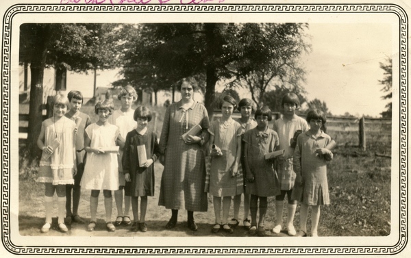 Mrs R E Bolton and Sunday School class on October 3, 1926. May be Sand Spring?