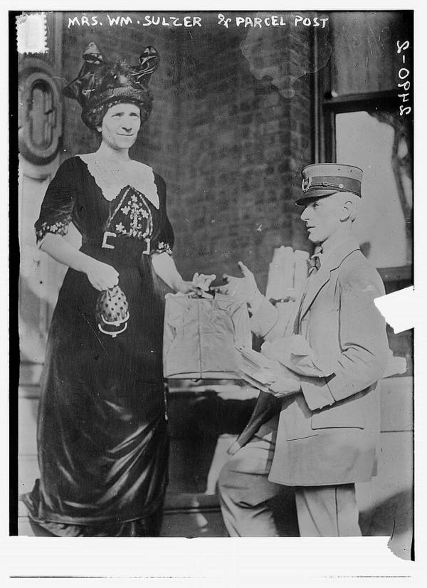 Mrs. Sulzer accepting the first parcel post package from New York to Albany