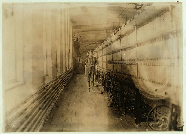 Mule-spinning room, Chace Cotton Mill, Burlington, Vt. Edward Marcotte, a "back-roping boy" who has been here one year. See also photo and label #730. Location: Burlington, Vermont.