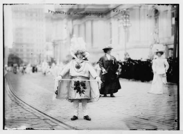 Mummers with band instruments, New Year's Day, Philadelphia, PA.