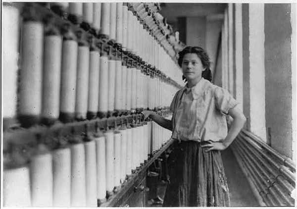 Name: Anna Grenier at her "speeder" Burlington, Vt. Has been here 2 years. Chace Cotton Mill. May 7, 1909. Location: Burlington, Vermont.