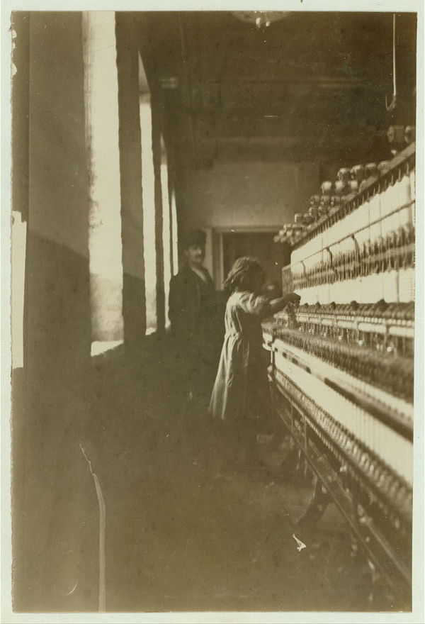 One of the little spinners in Amoskeag Mfg. Company, Manchester, N.H. She was about 48 inches high and about 11 or 12 years old. Location: Manchester, New Hampshire.