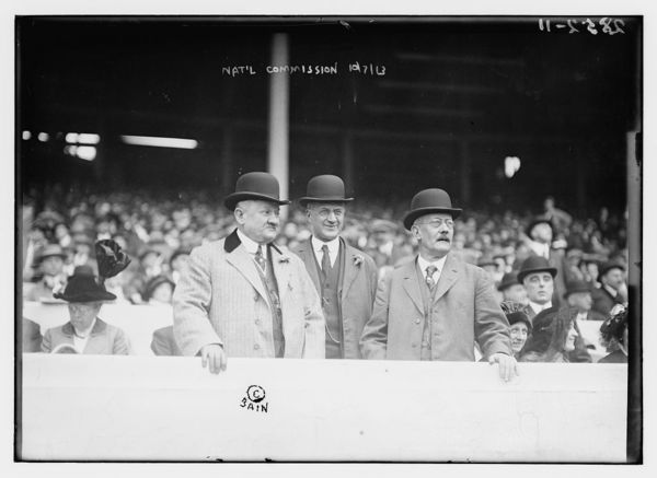 Edward McCall presents a silver basket of flowers to New York Giants manager John McGraw at Polo Grounds, NY (baseball)