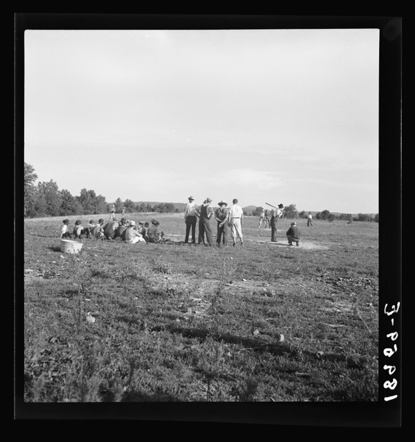 Near mountain home, northern Arkansas, on U.S. 62. Farmers' baseball game in the country. From this area many have gone to California to work in agriculture