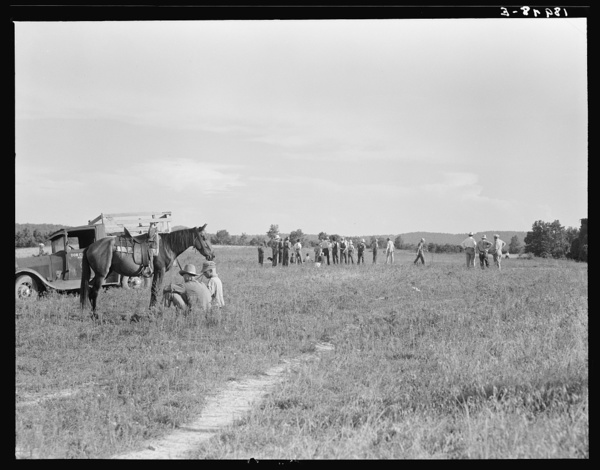 Near Mountain Home, northern Arkansas, on U.S. 62. Farmers' baseball game in the country. From this area many have gone to California to work in agriculture