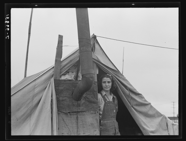 Near Strathmore, California. From Wyoming and Missouri. Eight years in California. Working in lemons. "It's easy for us because we haven't got a bunch of kids to get drug around."
