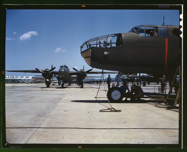 B-25 bombers lined up at North American Aviation, Incorporated, almost ready for their first test flight, Kansas City, Kansas