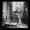 New Idria, California. Collecting mercury by hand from soot deposited in the condenser chamber at the mercury extraction plant of the New Idria Quicksilver Mining Company