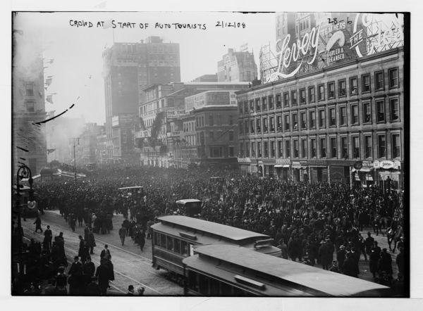 New York-Paris race: Zust car followed by Thomas car at Utica, New York State