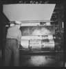 New York, New York. Pressroom of the New York Times newspaper. Placing plates on cylinder of press