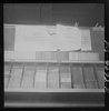 New York, New York. Composing room of the New York Times newspaper. Notices for type style changes in words such as WAAC (Women's Army Auxiliary Corp) and FBI (Federal Bureau of Investigation)