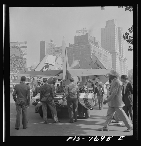 New York, New York. Grumman Wildcat airplane exhibited at Columbus Circle for bond selling purposes