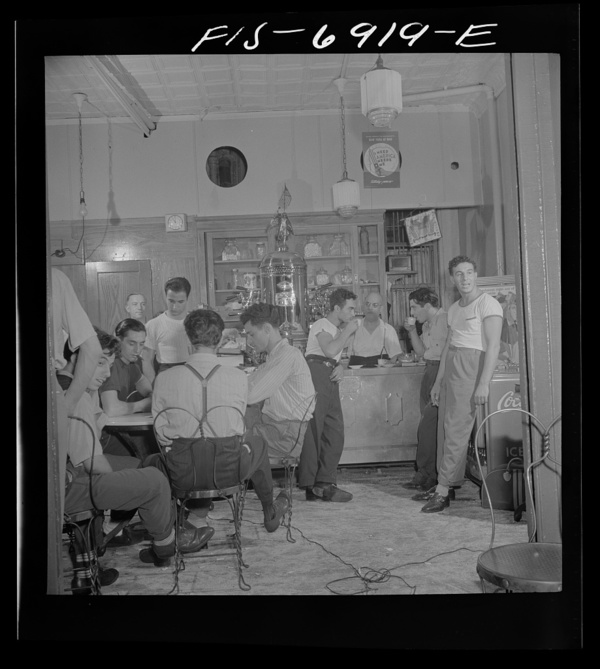 New York, New York. Italian-American cafe espresso shop on MacDougal Street where coffee and soft drinks are sold. The coffee machine cost one thousand dollars